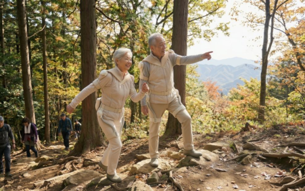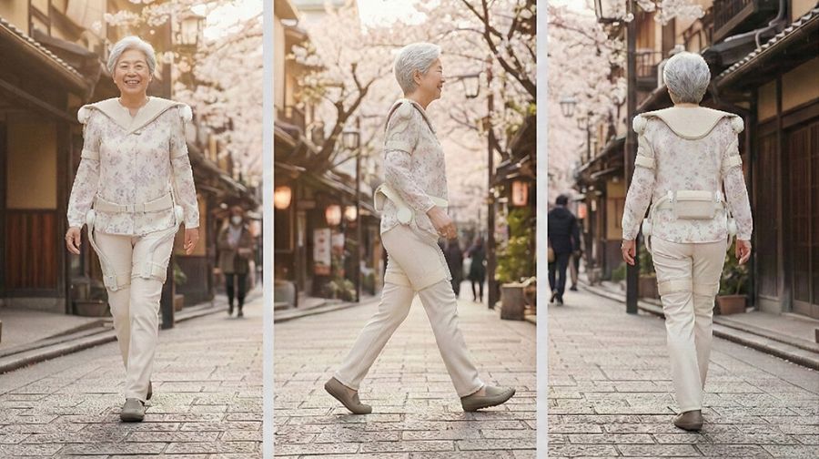 ロボットの歩行アシストで坂道や階段もらくらく登れる。軽くて簡単に装着でき、スタイリッシュなデザインのため、街歩きからリハビリまで広く活用可能。脳神経系や整形外科における多くのリハビリへの応用実績もある。これは人と人が「間(ま)」を合わせる仕組みを世界で初めてロボットに応用したものである。人間の歩行のリズムに同調してロボットの小型モータを駆動する仕組み。さらにC-Walkの歩行分析と組み合わせて活用することで、歩行運動の評価とフィードバックを両面からサポート。現在、先端技術を活用したバリアフリー観光事業(東京都庁)において展開中。