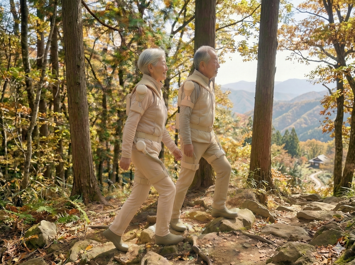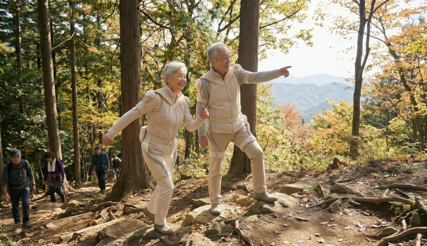 足腰の弱い方やご高齢の方もこのロボットを装着するだけで、坂道や階段も楽々のぼれ、身も心も軽くなる新しいアシスト体験